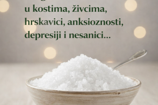 Ova slika nosi snažnu poruku koja je usmerena na najosetljivije tačke ljudskog zdravlja: hronični bol i mentalno blagostanje. Vizuelno jednostavno, sa fokusom na bele kristale (koji najviše podsećaju na krupnu morsku so ili magnezijum-hlorid), ono obećava nemoguće – univerzalno rešenje za čitav spektar različitih tegoba. Šta slika zapravo poručuje?Tekst na slici kaže: „Dve kašike ujutru…