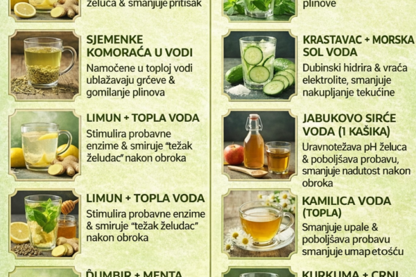 Neke jednostavne kombinacije namirnica mogu pružiti izuzetnu upotrebu tijela kada se redovno koriste u okviru uravnotežene ishrane. Spoj dvaju moćnih sastojaka često pojačava učinak pojedinačnih nutrijenata i može podržati opšte zdravlje. Zašto kombinacija ima efekat? Kako koristiti? NapomenaIako kombinacija može biti korisna, nije zamjena za medicinski tretman ili profesionalni savjet. Osobe sa specifičnim zdravstvenim problemima…