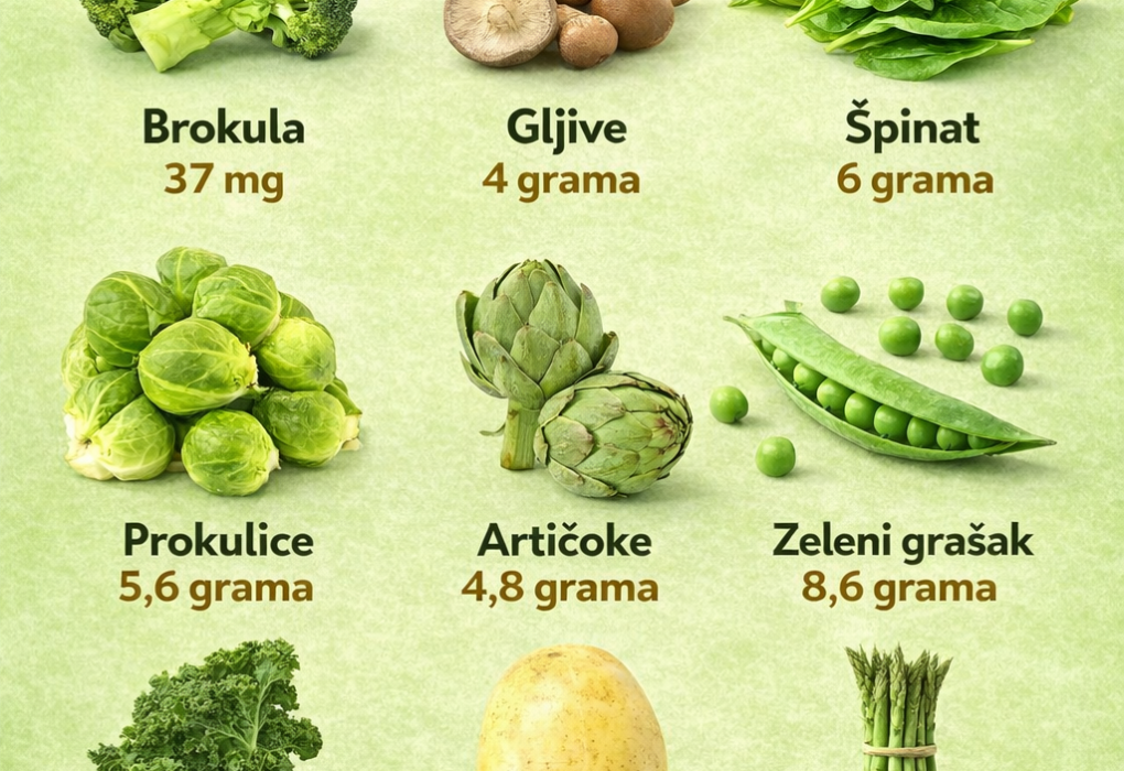 Ako želite povećati unos proteina bez mesa ili životinjskih proizvoda, dobra je vijest da mnoge vrste povrća sadrže iznenađujuće velike količine biljnih proteina. Iako povrće generalno nije glavni izvor proteina poput mahunarki ili orašastih plodova, određene vrste mogu značajno doprinijeti vašim dnevnim potrebama, posebno ako ih kombinuje u raznovrsnoj ishrani. Ovo je posebno važno za…