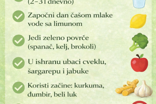 Jetra je jedan od najvažnijih organa u ljudskom tijelu. Neprestano radi na uklanjanju toksina, preradi nutritivnih tvari, podršku probavi i regulaciji metabolizma. Održavanje zdravlja jetre ključno je za cjelokupno blagostanje. Jednostavne dnevne navike mogu prirodno podržati detoksikaciju jetre i poboljšati vaše zdravlje. 1. Pijte dovoljno vodePijenje 2-3 litre vode dnevno pomaže u ispiranju toksina iz…