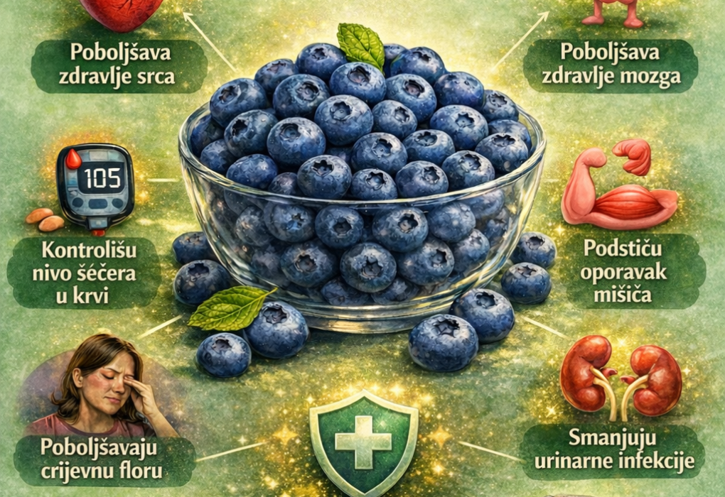 Iako su male, pune su prirodnih spojeva poput antocijanina, odgovornih za njihovu tamnoplavu boju, koji pomažu u zaštiti naših ćelija od oksidativnog oštećenja. Ovi spojevi, zajedno s drugim polifenolima i vitaminom C, potiču kardiovaskularno zdravlje pomažući u održavanju elastičnosti arterija i podržavajući zdrav nivo krvnog pritiska. Također mogu pomoći u stabilizaciji nivoa šećera u krvi…