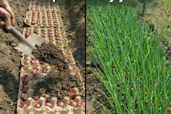 Sadnja luka s kartonskim podlogama za jaja (jednostavna metoda mreže)