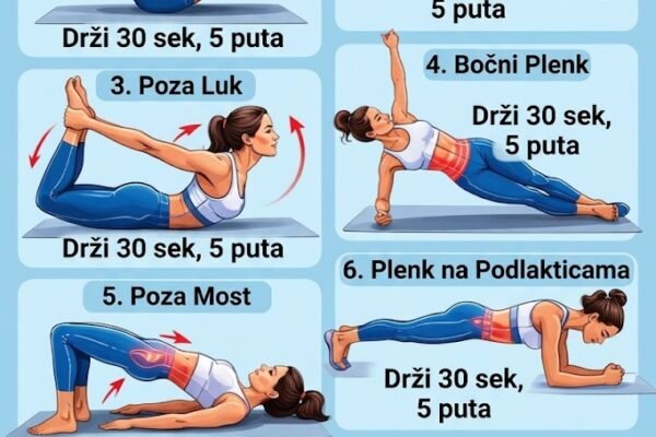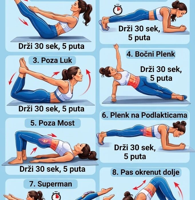 Redovno vježbanje joge jedan je od najboljih načina za izgradnju snažnog trupa, poboljšanje fleksibilnosti i podršku cjelokupnom fizičkom i mentalnom blagostanju. Slika prikazuje skup jednostavnih, ali moćnih joga poza dizajniranih posebno za jačanje mišića trupa, koji igraju ključnu ulogu u ravnoteži, držanju i svakodnevnom kretanju. 🌟 Zašto je snaga trupa važnaSnažan trup nije samo ravan…