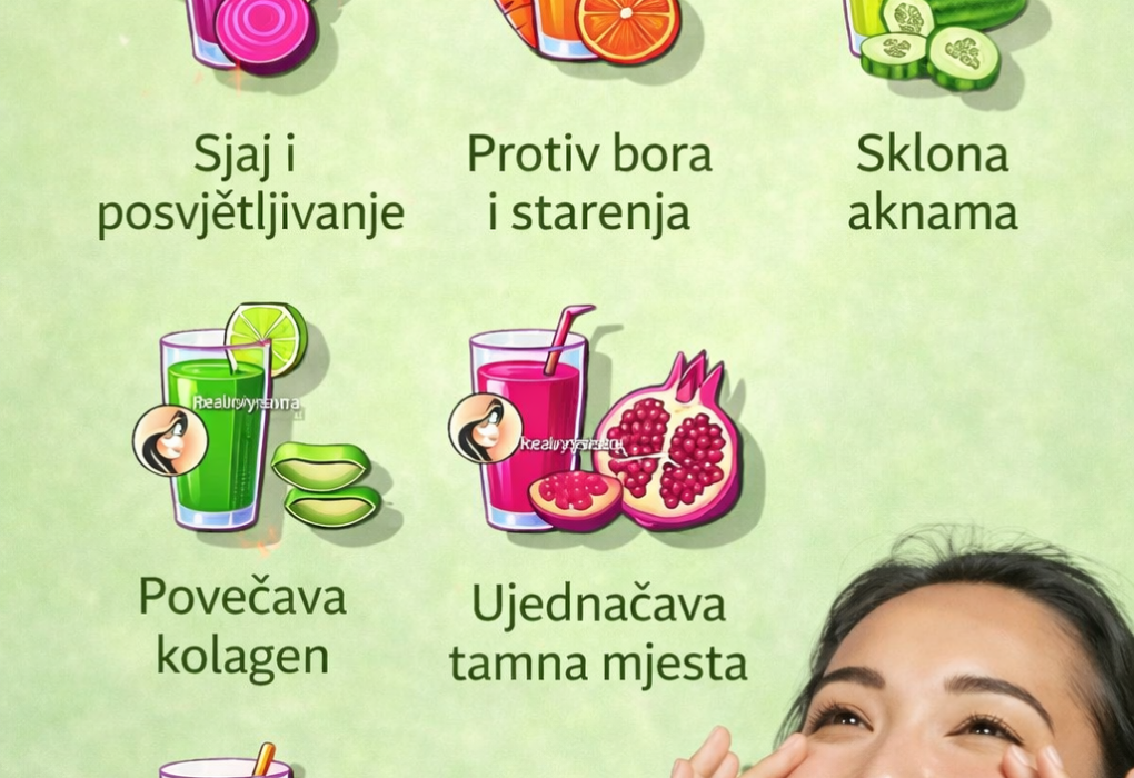 Zdrava, blistava koža ne odnosi se samo na proizvode za njegu kože – ona počinje iznutra. Slika ističe nekoliko prirodnih sokova koji mogu podržati čistiju, svjetliju i zdraviju kožu. Istražimo kako ovi sokovi prirodno koriste vašoj koži. 🍹🌿 🥕 1. Sok za sjaj i posvjetljivanje kožeSokovi napravljeni od sastojaka poput cvekle, mrkve ili citrusnog voća…