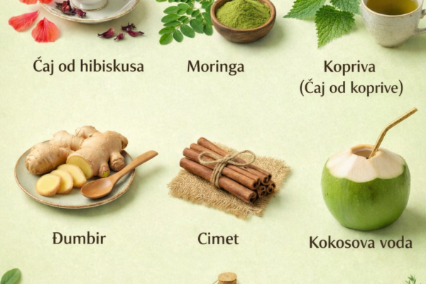 Čaj od hibiskusa: Čaj od hibiskusa može pomoći u održavanju zdravog krvnog pritiska tako što podstiče opuštanje krvnih sudova i djeluje kao prirodni diuretik. Moringa: Moringa je bogata antioksidansima i mineralima koji mogu pomoći u smanjenju upale i podršci kardiovaskularnom zdravlju. Kopriva: Kopriva može podržati ravnotežu krvnog pritiska tako što pomaže tijelu da eliminiše višak…