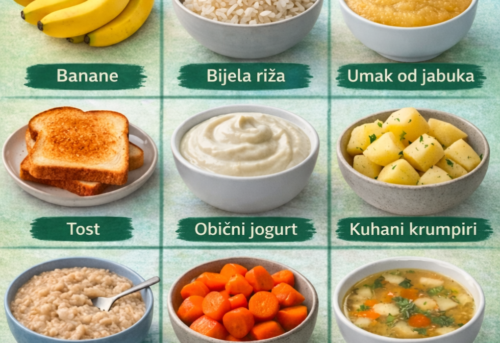 Dijareja je čest zdravstveni problem koji može oslabiti tijelo, dehidrirati ga i ostaviti ga bez esencijalnih hranjivih tvari. Tokom ovog stanja, probavni sistem postaje osjetljiv, a konzumiranje pogrešne hrane može pogoršati simptome. Dobra vijest je da jednostavna, prirodna hrana može pomoći vašem tijelu da se brzo oporavi. Hrana prikazana na slici je blaga za želudac,…