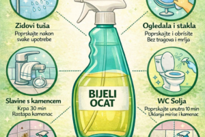 Boca s raspršivačem napunjena bijelim octom praktičan je saveznik za rješavanje uobičajenih problema u kupaonici bez pribjegavanja agresivnim hemikalijama. 🧴✨ 🚿 ZIDOVI TUŠ KABINENanesite lagani raspršivač nakon svakog tuširanja. Pomaže u uklanjanju ostataka sapuna i sprječava bijele tragove. 🪞 OGLEDALA I STAKLOPoprskajte površinu i obrišite suhom krpom od mikrovlakana. Staklo će biti blistavo čisto, bez…