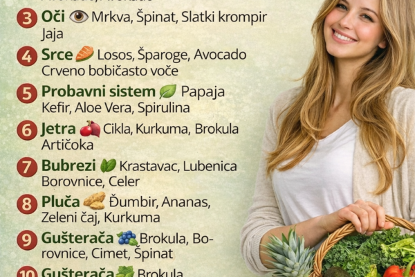 Naša tijela imaju specijalizirane organe koji eliminiraju toksine i održavaju unutarnju ravnotežu. Međutim, prehrana igra ključnu ulogu u poboljšanju ovih funkcija. Ova slika pokazuje kako određene namirnice mogu prirodno podržati različite organe, poboljšavajući cjelokupno zdravlje. ❤️ KRVHrana poput nara, cvekle, bijelog luka i borovnica pomaže u poboljšanju cirkulacije i detoksikacije.👉 Prednost: Potiču oksigenaciju i čišćenje…