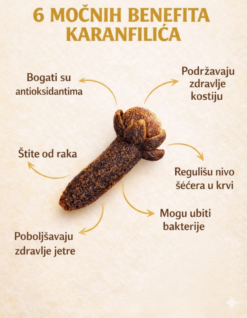 Karanfilić je mali začin s velikim potencijalom. Iako nije lijek, njegova redovna i umjerena upotreba može doprinijeti zdravlju kroz antioksidativno, antibakterijsko i probavno djelovanje. Najveću korist daje kao dio uravnotežene ishrane i zdravog načina života.