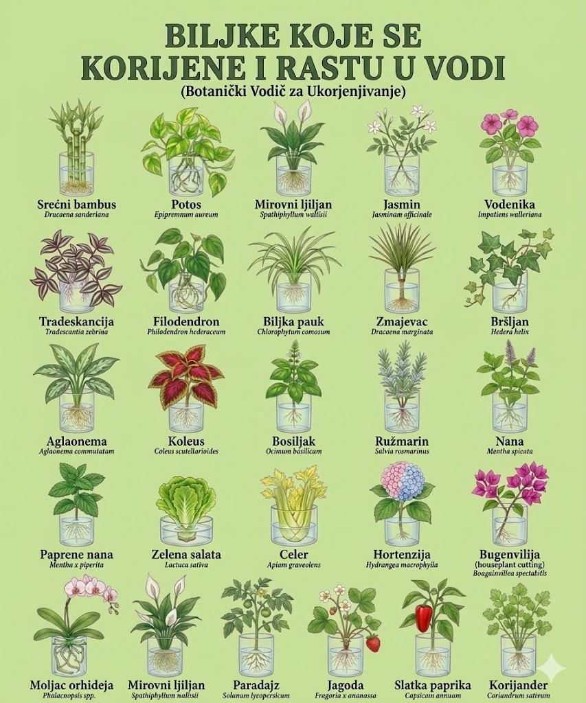 Unošenje biljaka u vaš dom ne mora biti komplicirano. Mnoge lijepe i korisne biljke mogu rasti direktno u vodi bez zemlje. Ove biljke ne samo da uljepšavaju vaš prostor, već pružaju i brojne zdravstvene prednosti, poboljšavaju kvalitet zraka, pa čak nude i svježe začinsko bilje za svakodnevnu upotrebu. Ova jednostavna i čista metoda uzgoja biljaka savršena je za moderan, zdrav život.