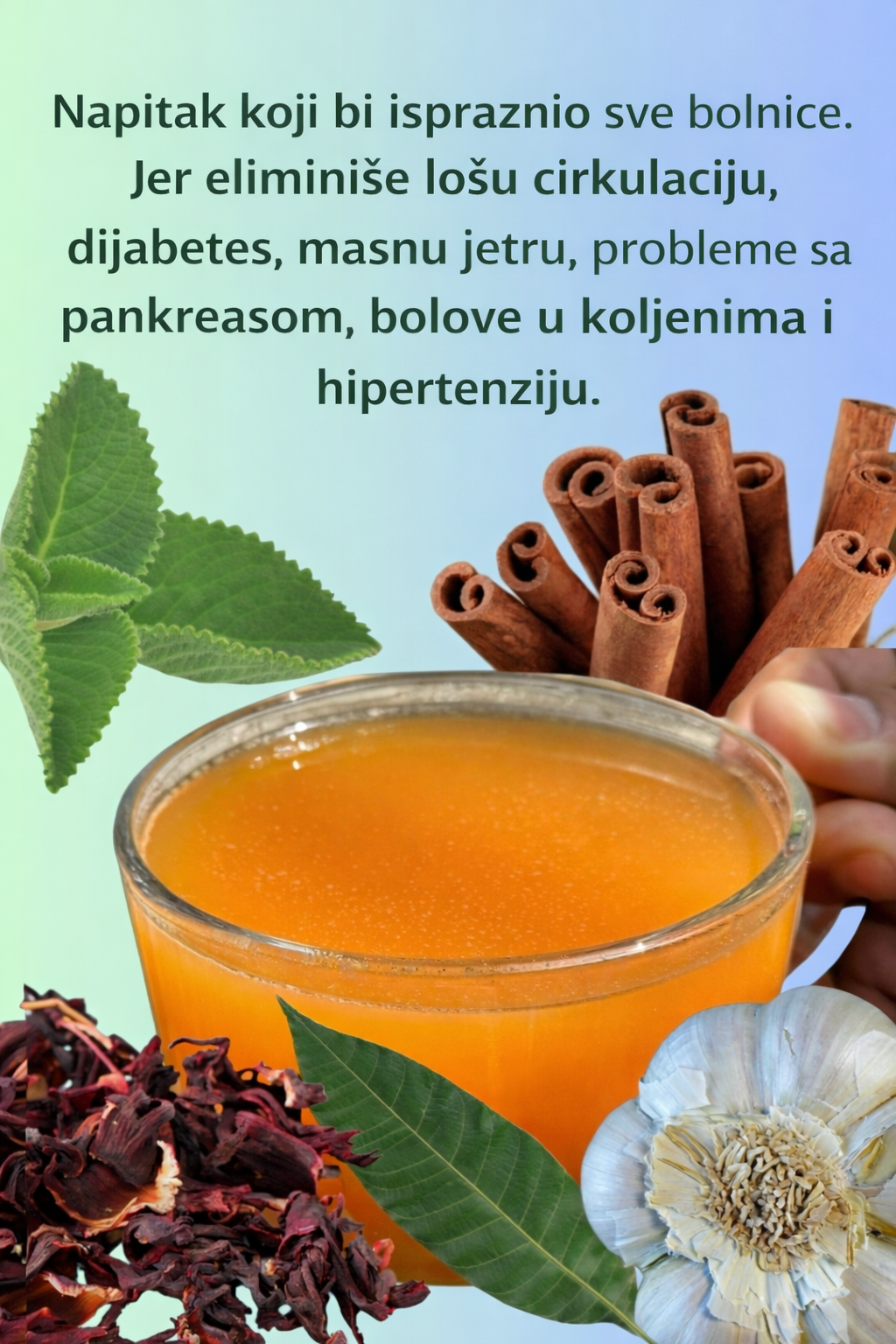 Prirodni biljni napitci se koriste vekovima za podršku tijelu i poboljšanje cjelokupnog blagostanja. Napitak prikazan na slici kombinuje nekoliko moćnih prirodnih sastojaka kao što su hibiskus, cimet, bijeli luk i svježi listovi bilja, koji su poznati po svojim blagotvornim svojstvima. Kada se kombinuju u topli biljni napitak, ovi sastojci mogu pomoći u podršci cirkulaciji, metabolizmu i opštem zdravlju tela.