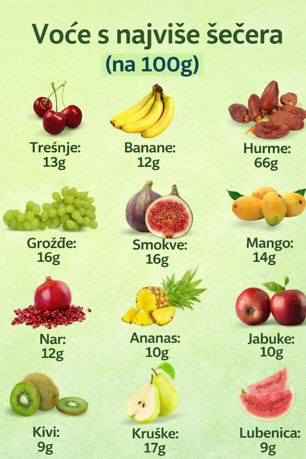 🍇 Voće s višim sadržajem šećera