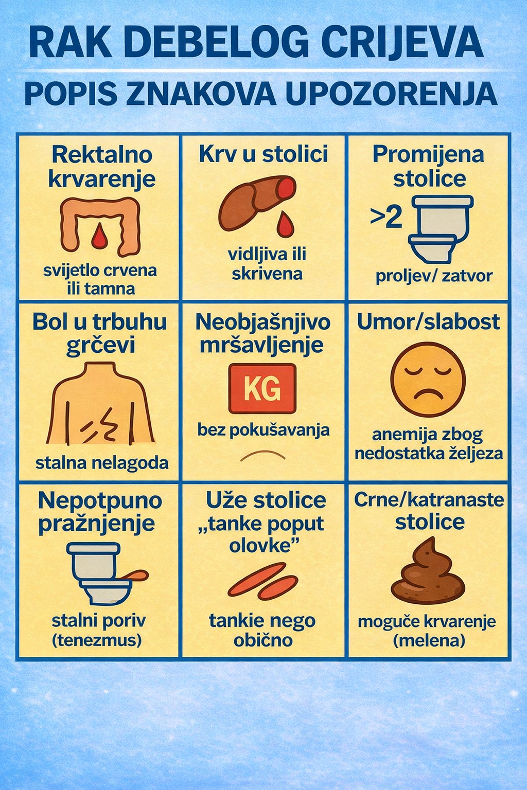 ⚠️ Uobičajeni znakovi upozorenja na rak debelog crijeva