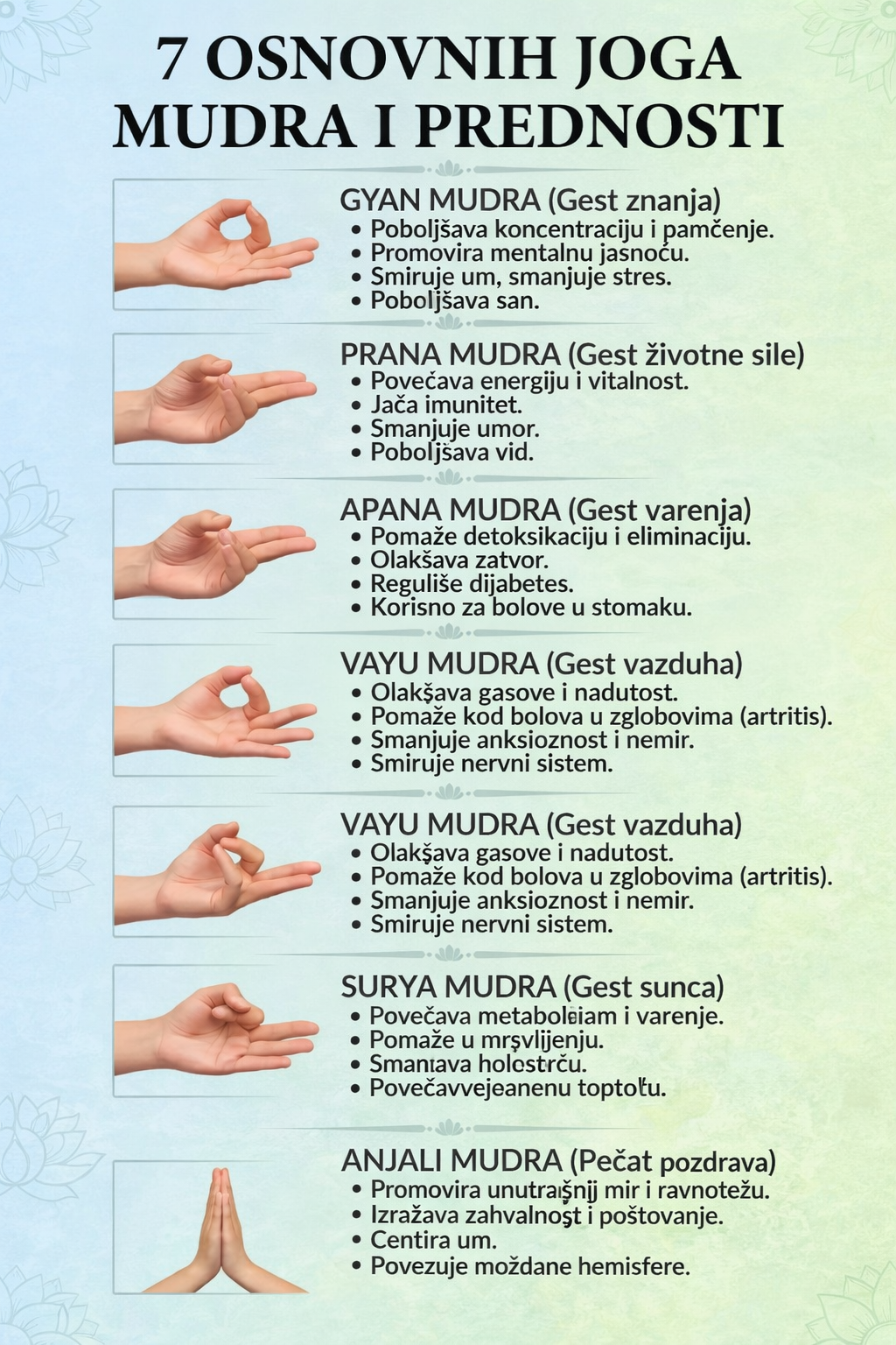 Joga nije samo fizička vježba – ona uključuje i jednostavne geste rukama zvane mudre koje mogu poboljšati i mentalno i fizičko zdravlje. Ove mudre je lako praktikovati bilo gdje i mogu donijeti snažne koristi kada se redovno rade.