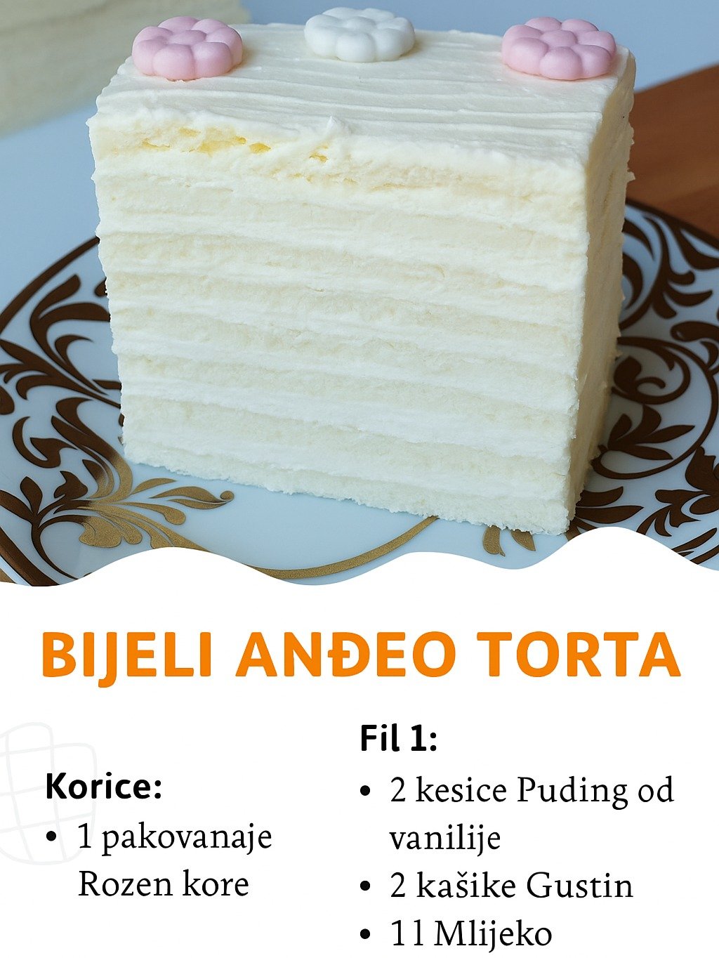 - Dodajte svježe voće ili čokoladne mrvice za dodatni vizualni dojam.Znate li da se torta poput ove često naziva “kraljicom među tortama” zbog svoje delikatne strukture i nježnog izgleda? S ovom tortom sigurno ćete impresionirati goste, ali i sebe. Pratite naš recept i otkrijte zašto je torta Bijeli Anđeo jedan od najtraženijih deserta!