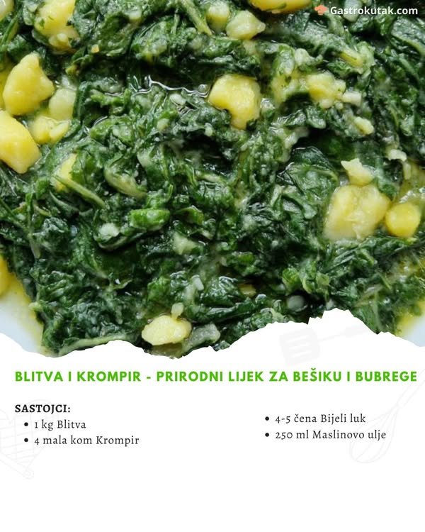 Ovaj jednostavan i zdrav recept za blitvu s krompirom savršen je način da u svoju ishranu uvrstite blitvu, biljku bogatu hranjivim tvarima. Blitva se kuha s krompirom, a zatim se prži sa bijelim lukom i maslinovim uljem, stvarajući ukusan i hranljiv obrok.
