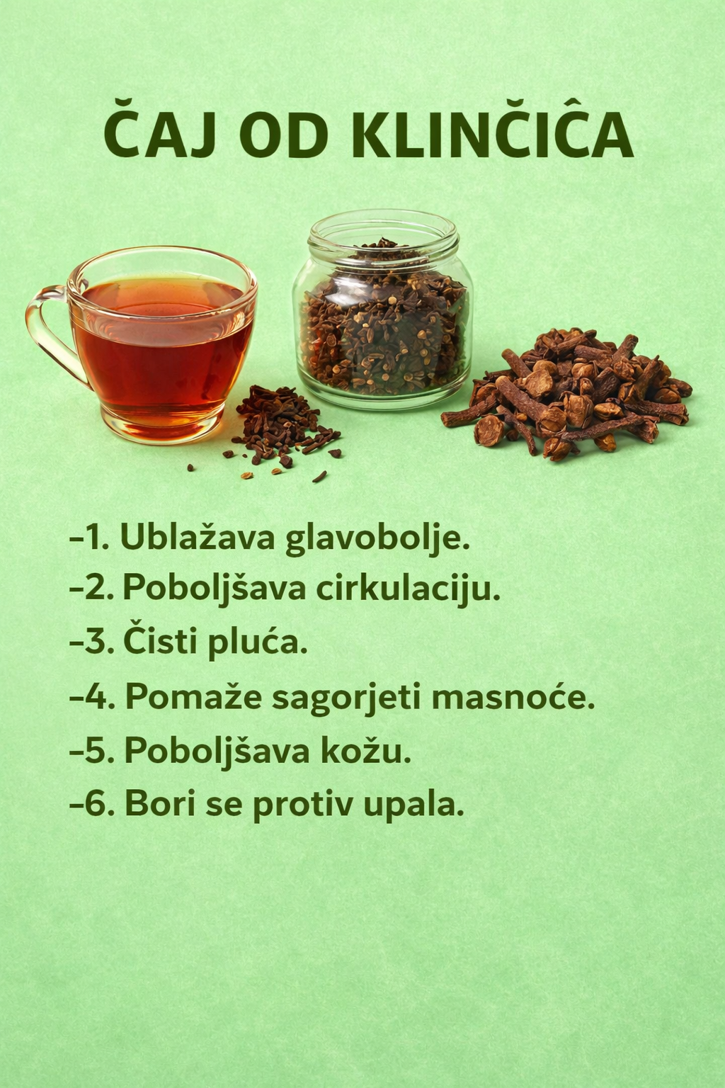 Ukratko, čaj od karanfilića je jednostavan, ali izuzetno moćan napitak koji može postati dio vaše svakodnevne rutine. Uz samo nekoliko karanfilića, dobijate prirodnu podršku za imunitet, probavu, ljepotu i opšte blagostanje.