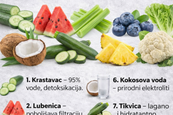 1️⃣ Krastavac – 95% vode, hladi i detoksicira tijelo 🥒 2️⃣ Lubenica – Pojačava filtraciju i hidrataciju bubrega 🍉 3️⃣ Celer – Uravnotežuje tekućinu i pomaže u ispiranju toksina 🌿 4️⃣ Borovnice – Pune antioksidansa koji štite bubrege 5️⃣ Zelena salata – Lagano, zeleno povrće s niskim udjelom oksalata za sigurnost bubrega 🥬 6️⃣ Kokosova…