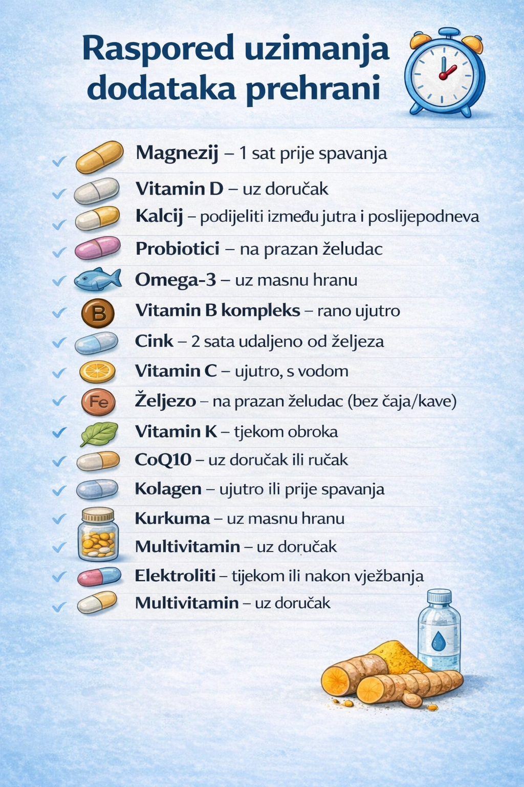 - Vitamin B kompleks – rano ujutro, za podršku energije
