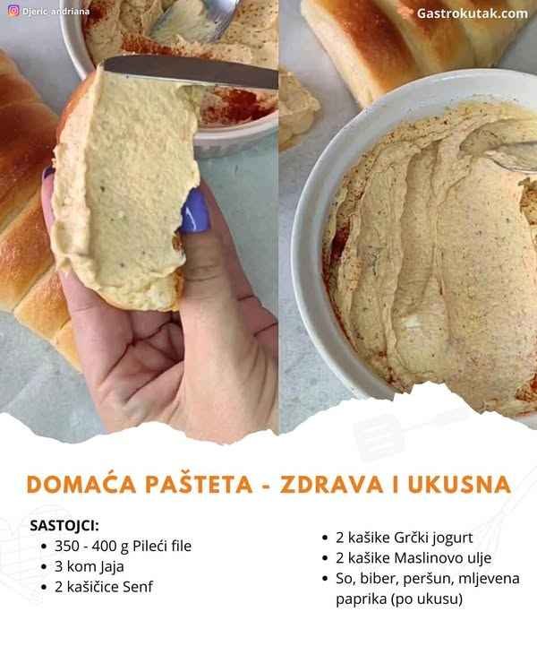 Ovaj recept za domaću paštetu je brz, ukusan i zdrav način da uživate u omiljenoj pašteti. Sastojci poput pilećeg filea, jaja, grčkog jogurta i maslinovog ulja čine je kremastom i bogatom, a priprema traje samo 15 minuta. Idealna je za brzi obrok ili užinu, a možete je prilagoditi po svom ukusu dodajući začine poput senfa i peršuna. Domaća pašteta je savršen namaz za svaki dan!