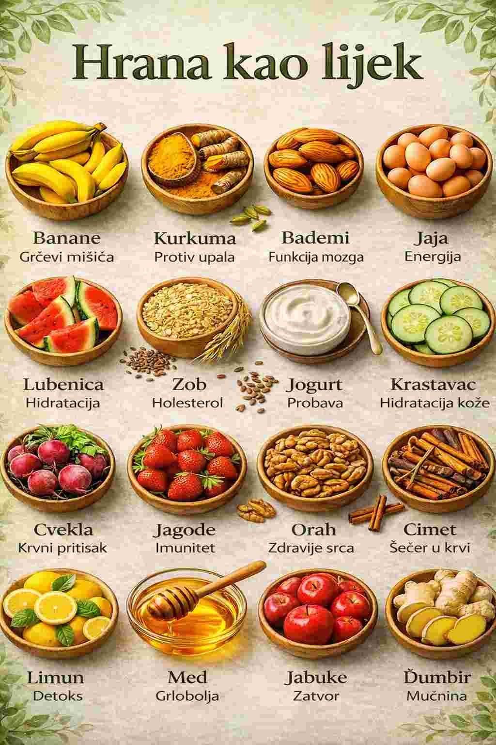 U današnjem brzom svijetu često zaboravljamo da se neki od najmoćnijih lijekova već nalaze u našim kuhinjama. Ideja da hrana može djelovati kao lijek nije nova – praktikuje se stoljećima u različitim kulturama. Odabirom prave hrane možemo prirodno podržati svoje tijelo, poboljšati cjelokupno zdravlje i spriječiti mnoge uobičajene bolesti.