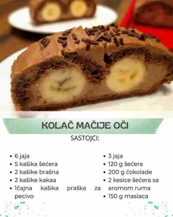 Heathy FoodKolač “Mačije oči”: Toliko je kremast da se topi u ustima, a brzo se sprema Itexpert1 week ago1 week ago01 mins Sastojci: Kora: 6 jaja 5 kašika šećera 2 kašike brašna 2 kašike kakaa 1čajna kašika praška za pecivo Fil: 3 jaja 120 g šećera 200 g čokolade 2 kesice šećera sa aromom ruma 150 g maslaca Post navigation Previous: 1 šalica mjesečno i čak će i suhi panj biti obasut CVIJEĆEM: Moja orhideja cvjeta bez prestanka cijele godine!Next: 13 namirnica koje možete jesti koliko želite, a da se ne udebljate Leave a Reply Cancel replyYour email address will not be published. Required fields are marked *Comment * Name * Email * Website Save my name, email, and website in this browser for the next time I comment.