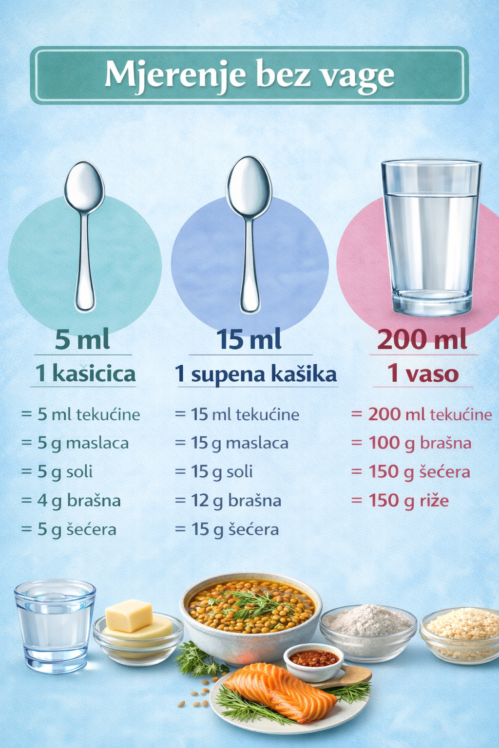 Ove reference su vrlo korisne za pripremu recepata kod kuće bez pribjegavanja specijaliziranim mjernim instrumentima.