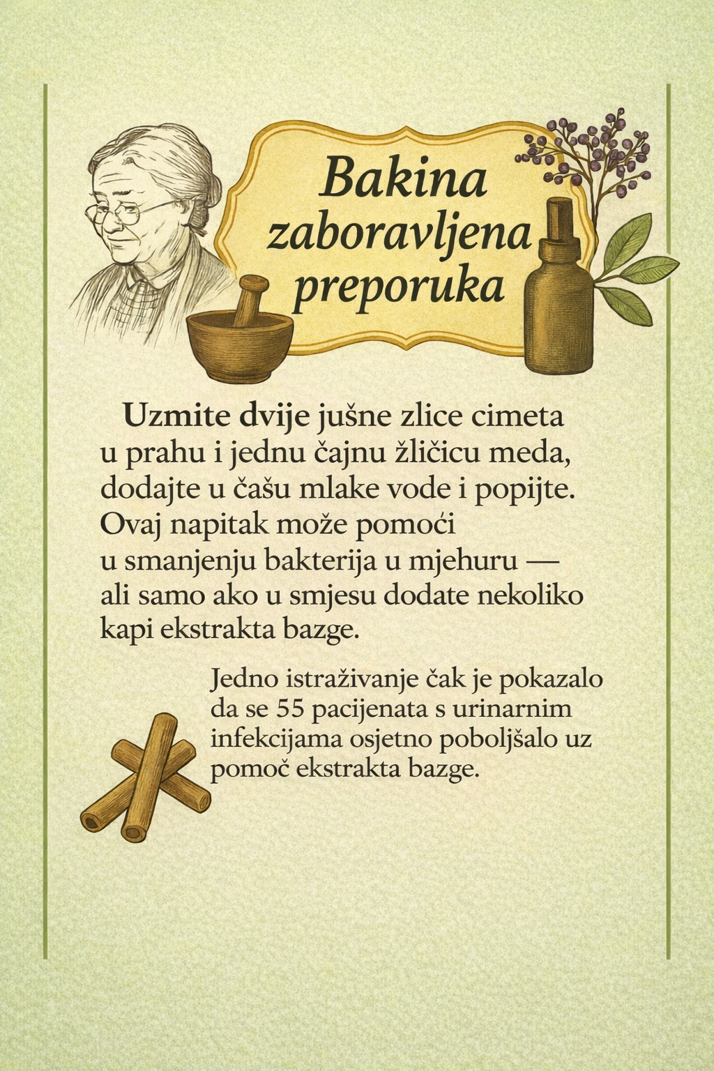 Napravite mješavinu od bilja poput cimeta, uve, bobicama borovice, jer su to sve dobri domaći lijekovi za liječenje urinarne infekcije.