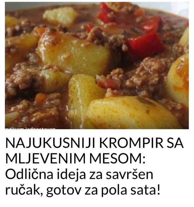 Ukoliko možete odvojiti 30-ak minuta, ovo je pravi recept za vas.Sastojci:1/2 kg krompira,350 g mljevenog mesa,1 crni luk,1 mrkva,2 crvene paprike (150 g),1/2 l vrele vode,200 g pasiranog paradajza,50 ml vrhnja za kuhanje,vegeta, peršun, paprika, biber.