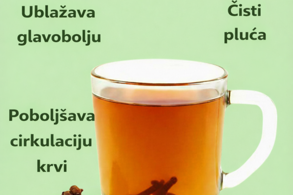 Narodni recept pomaže kod bolesti grla, neredovne probave, slabe cirkulacije, a preporučuje se i kod srčanih tegoba, problema bubrega i krvnih sudova. Danas sa vama dijelimo nekoliko kvalitetnih prirodnih recepta od ova 4 sastojka: Med i jabukovo sirćeRastvorite dvije kašike sirćeta u dva dl mlake prokuhane vode, pa dodajte dvije kašike meda. Uzimati dva do…