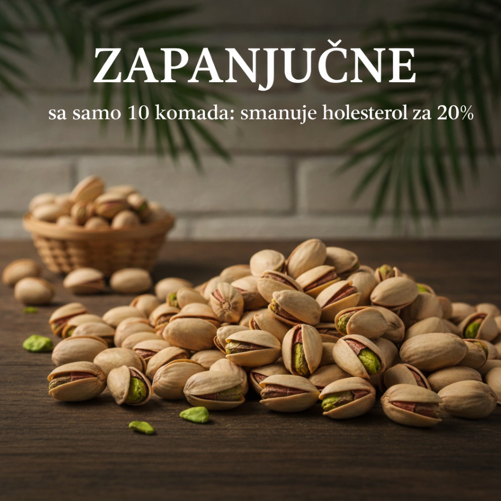 Jedna od najvažnijih prednosti pistacija je njihova sposobnost da pomognu u smanjenju lošeg holesterola (LDL), a istovremeno podrže dobar holesterol (HDL). To ih čini odličnom hranom za održavanje zdravlja srca i smanjenje rizika od kardiovaskularnih bolesti.