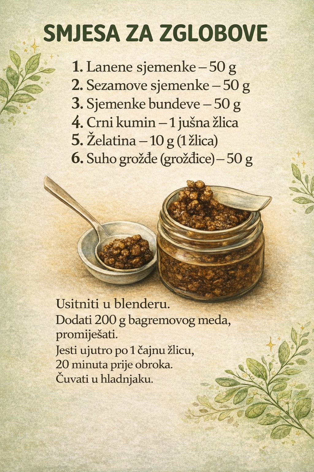 Ova prirodna mješavina sjemenki i meda je jednostavan, ali moćan lijek inspiriran tradicionalnim wellness praksama. Podržava zglobove, kosti i ukupnu vitalnost bez oslanjanja na umjetne dodatke prehrani. Dosljednost je ključna za iskusavanje njenih blagodati.