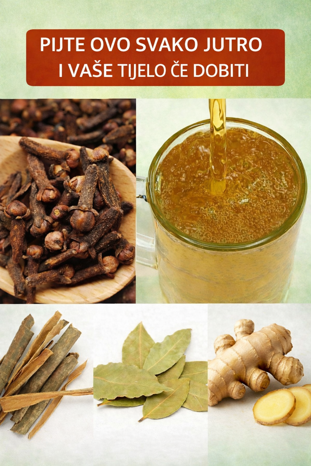 Slika prikazuje tradicionalni biljni napitak pripremljen s moćnim prirodnim sastojcima poput klinčića, štapića cimeta, lovorovog lista, đumbira i meda. Ovi sastojci se stoljećima koriste u prirodnim praksama blagostanja za podršku cjelokupnom zdravlju i ravnoteži u tijelu.