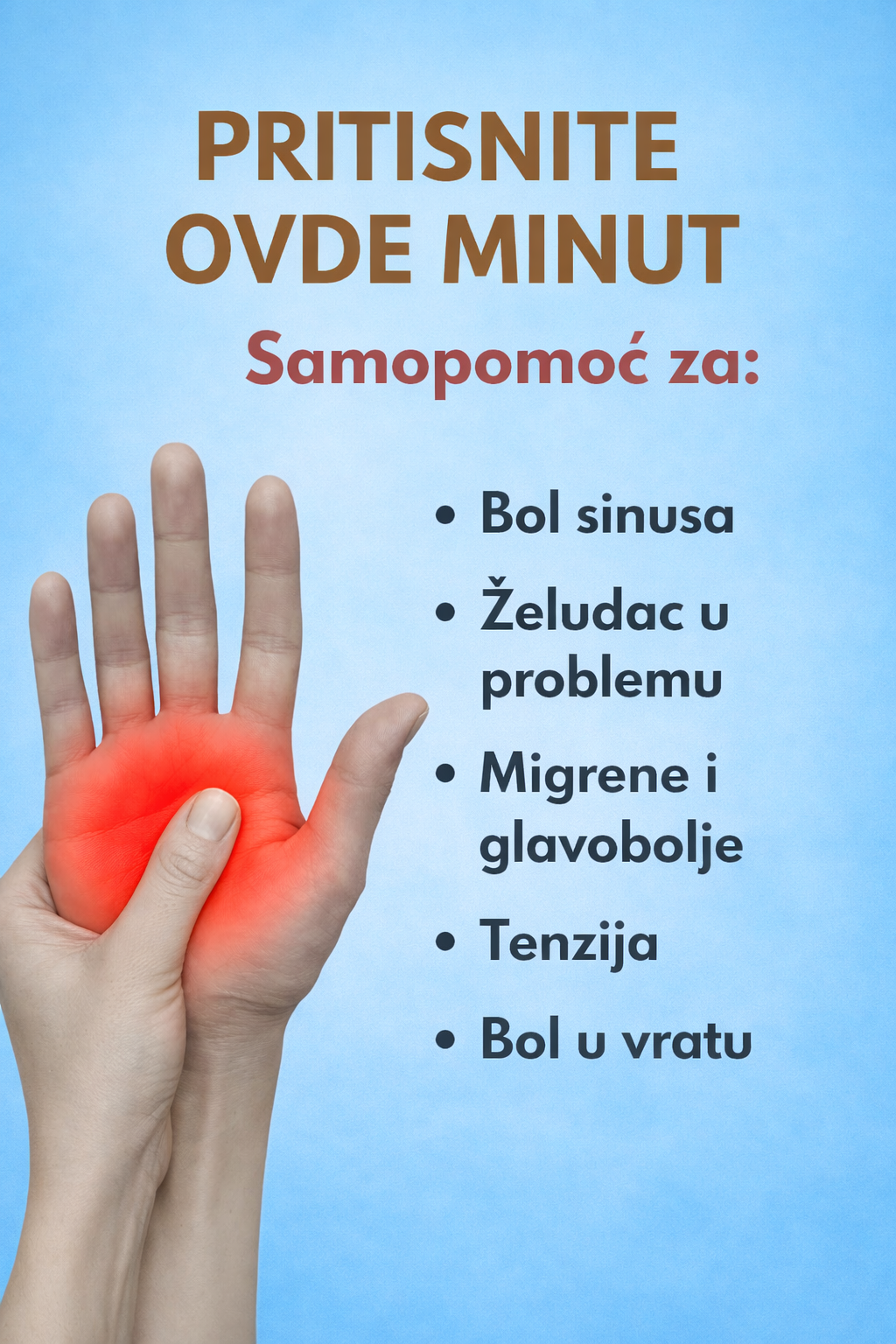 U drevnim tradicijama širom svijeta, pritisak na određene tačke na rukama koristio se kao jednostavan način za ublažavanje bolova i nelagodnosti. Ova praksa poznata je i u modernim vremenima, jer mnogi ljudi otkrivaju da može donijeti olakšanje bez lijekova i posebne opreme.