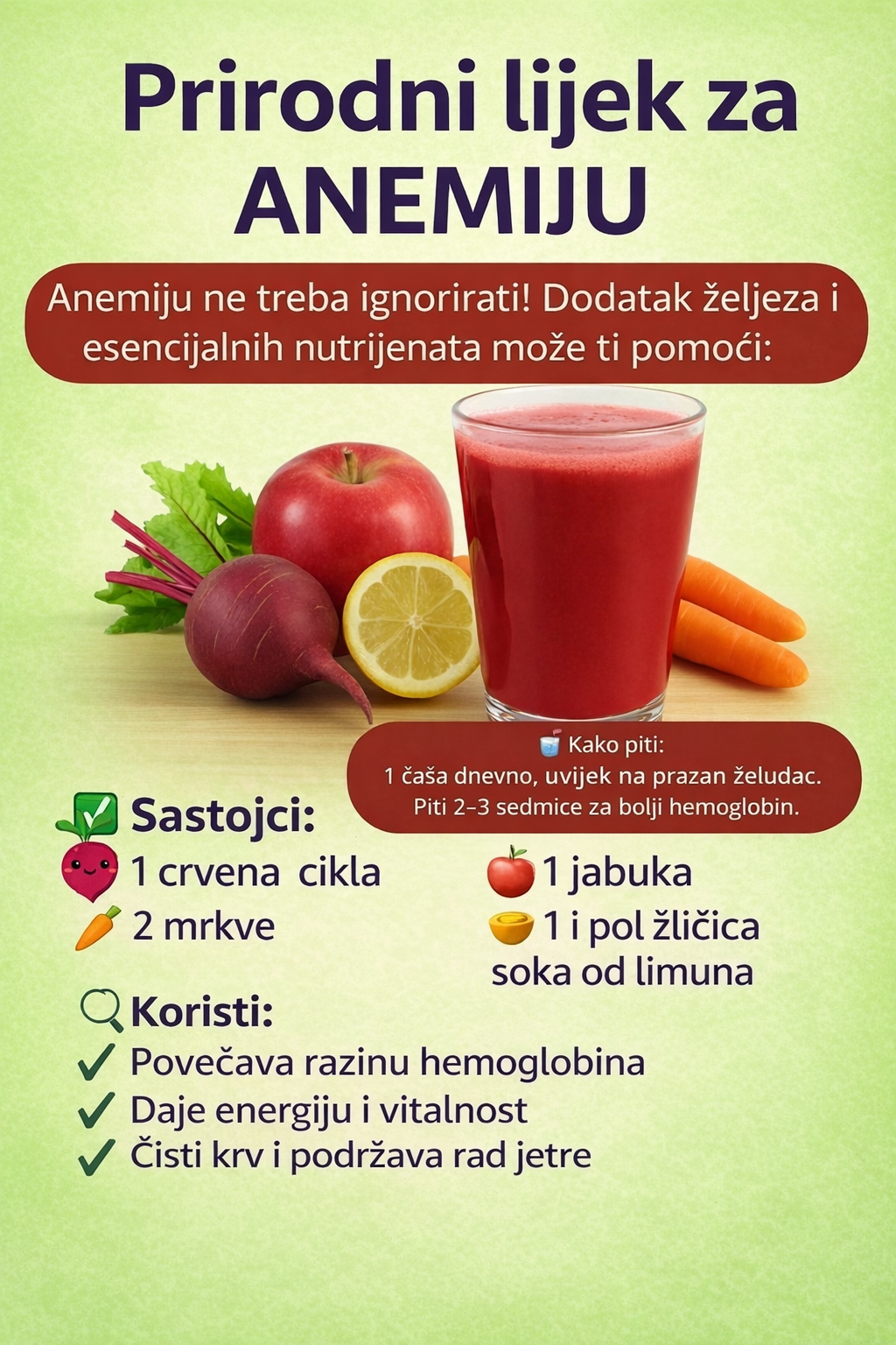 Ovaj osvježavajući napitak je više od običnog detoks napitka. Pun je antioksidansa, esencijalnih vitamina i protuupalnih spojeva koji pomažu u čišćenju vašeg sistema, poboljšanju probave i poboljšanju vašeg cjelokupnog blagostanja. Ako tražite prirodan i pristupačan način da se osjećate bolje svaki dan, ovaj napitak je za vas.
