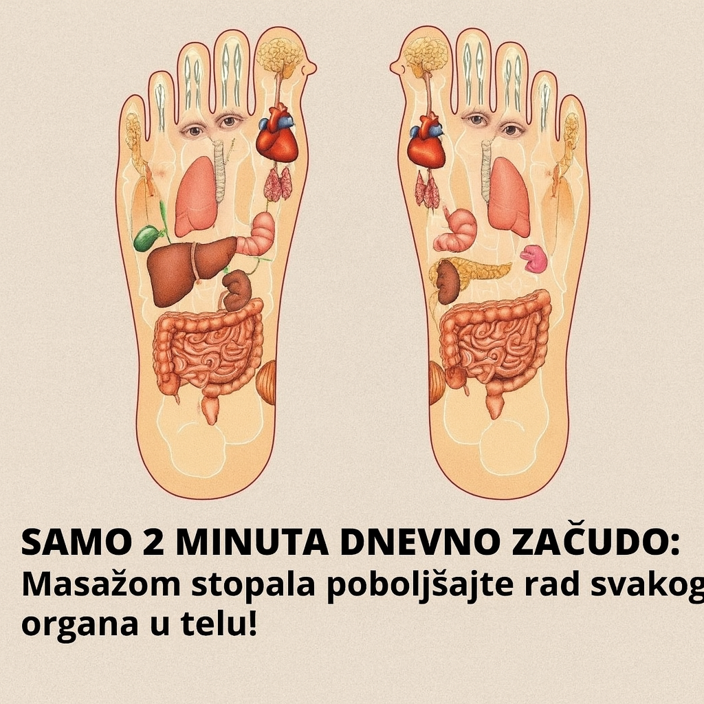 Masaža stopala, često povezana s refleksologijom, drevna je praksa koja povezuje specifična područja stopala s različitim organima i sistemima u tijelu. Kao što je prikazano na slici, vjeruje se da različite tačke na tabanima odgovaraju organima kao što su srce, pluća, jetra, želudac, crijeva, bubrezi i mozak. Stimulacija ovih područja nježnom masažom može pomoći u poboljšanju cjelokupnog blagostanja.