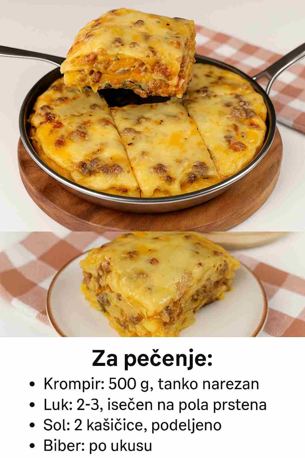 Otkrijte ukusnu jednostavnost ovog pečenja od krompira i luka u slojevima, jela koje je izdržalo test vremena u kuhinjama širom sveta. Uz svježu i ukusnu salatu, ovaj recept kombinuje utješnu toplinu pečenog krompira sa hrskavom svježinom sezonskog povrća, što ga čini savršenim obrokom za svaki dan u sedmici.