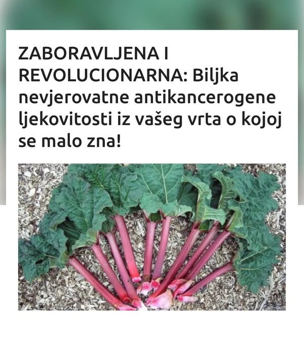 Revolucija u liječenju malignih bolesti! Rabarbara je danas jedna od manje poznatijih i raširenijih jestivih biljaka kod nas te je često jako zapostavljena.