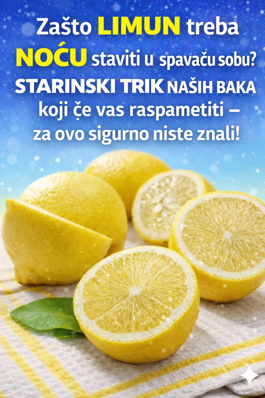 Ali da li ste znali da limun treba staviti u spavaću sobu kako biste imali bolji san? To je stara praksa koje se vaši baka i deka možda sjećaju, ali je danas za mnoge nepoznanice. Ako vas muči nesanica, isprobajte sledeći trik: limun isjecite na četiri dela i stavite ga u činiju ili posudu koju ćete staviti pored kreveta. Ostavite ga tu preko noći, a ovo bi trebalo da vam pomogne da bolje spavate i osećate se odmornije narednog dana.