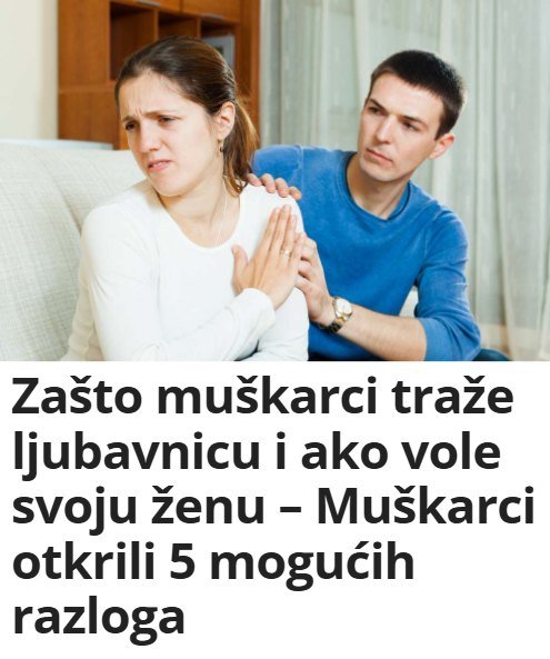 Strah od gušenja u vezi: Postoje i muškarci koji, suočeni s rutinom ili problemima u trenutnoj vezi, vide ljubavnicu kao posljednju nadu da izbjegnu osjećaj gušenja. Umjesto rješavanja problema kod kuće, biraju dodatnu vanjsku vezu kako bi zadovoljili svoje emotivne potrebe.